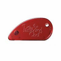 The i-Slice has a tiny little blade that only cuts through a thin layer of anything. For example, I can slice through wrapping paper and not mark the table below. Note: don’t press, just slide. According to the product description you can: “Clip recipes and coupons, cut shrink-wrap, and open CDs and DVDs with this lightweight ceramic blade.”