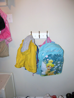 Purchasing a bench with storage baskets and matching hook and basket system was a great step in the right direction for my family. Not only did the children gain a place to sit when putting on their shoes, but they now had a place to keep those shoes as well. Only, the children cannot reach the hooks, so the idea of self-sufficiency was out of the question. Also, I have a little tote problem. I admit it. I like a good tote. Between my children and their backpack habits, my tote fetish, and the occasional windbreaker, the hooks had met their match. And quite frankly I was sick and tired of having to hang up the items in my home that my kids could take care of by themselves at pre-school.