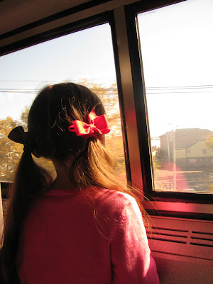 Emma rode her first train. She couldn’t believe that there was no car seat, booster seat, or seat belt!